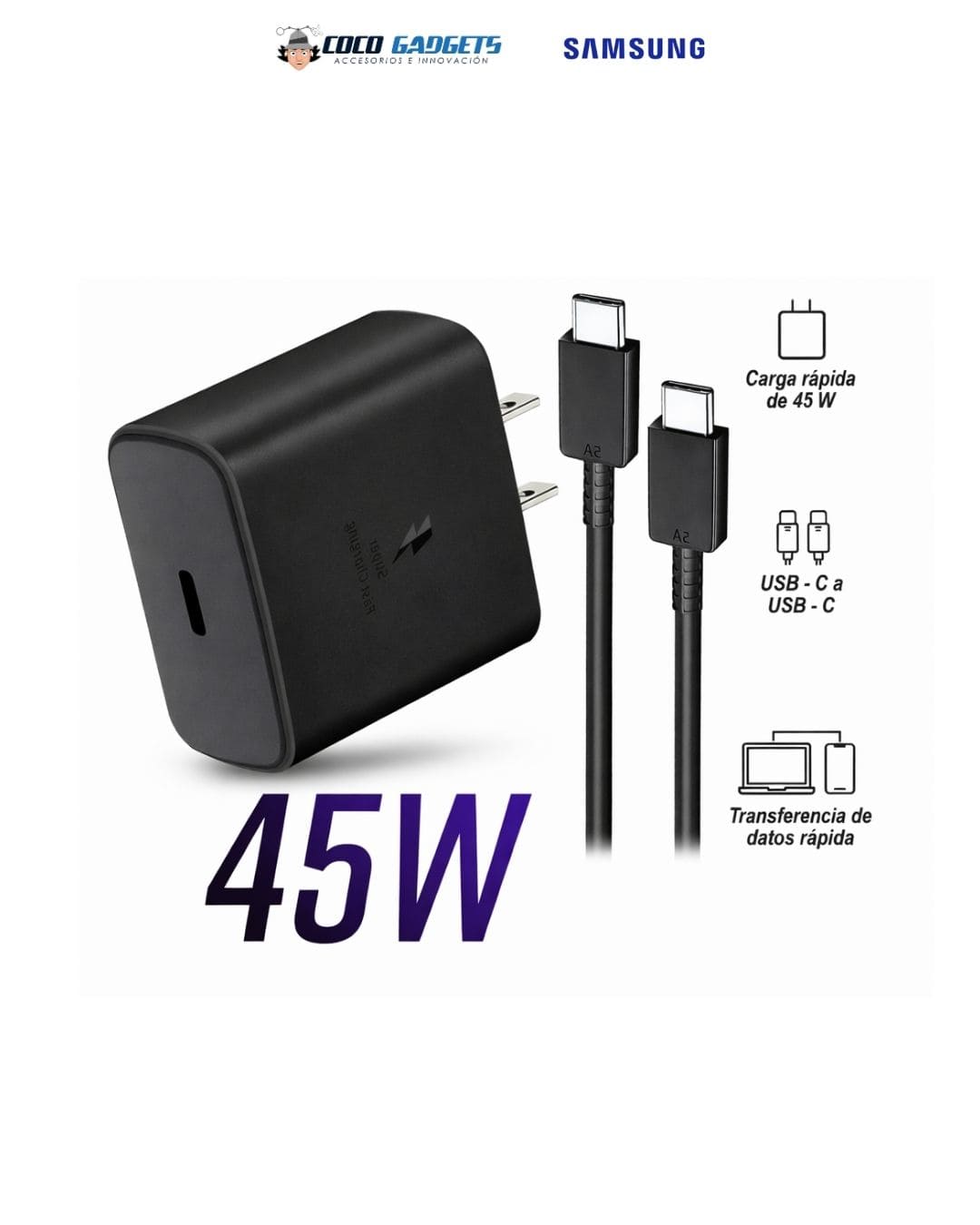 ORIGINAL SAMSUNG 45W · USB-C · CARGA SÚPER RÁPIDA