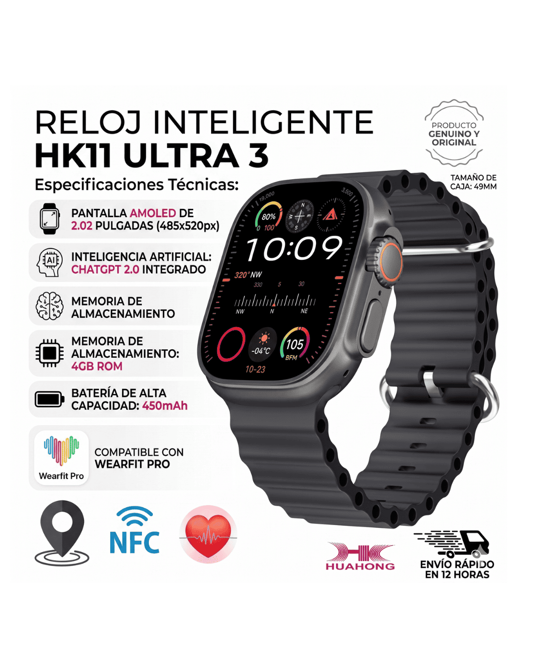 Domina tu entorno con el HK11 Ultra 3 Max (49mm): Pantalla AMOLED, ChatGPT integrado y 4GB de ROM. ⌚