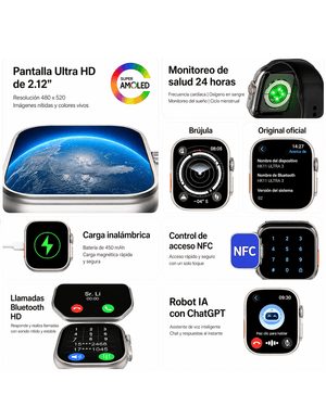 🧠 Inteligencia Artificial Integrada: ChatGPT y traductor por voz en tu muñeca. Resuelve dudas y gestiona tareas al instante hablando con el dispositivo.